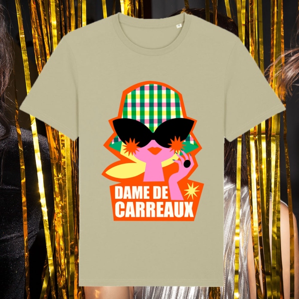 Dame de carreaux la blonde, t-shirt sauge ou noir