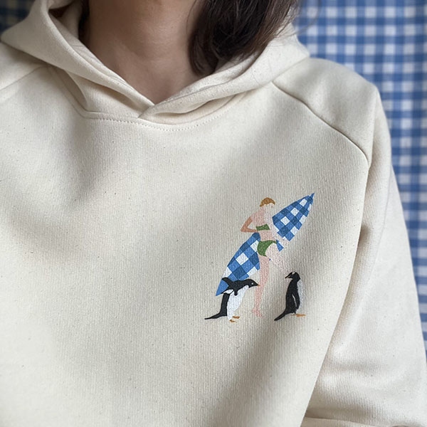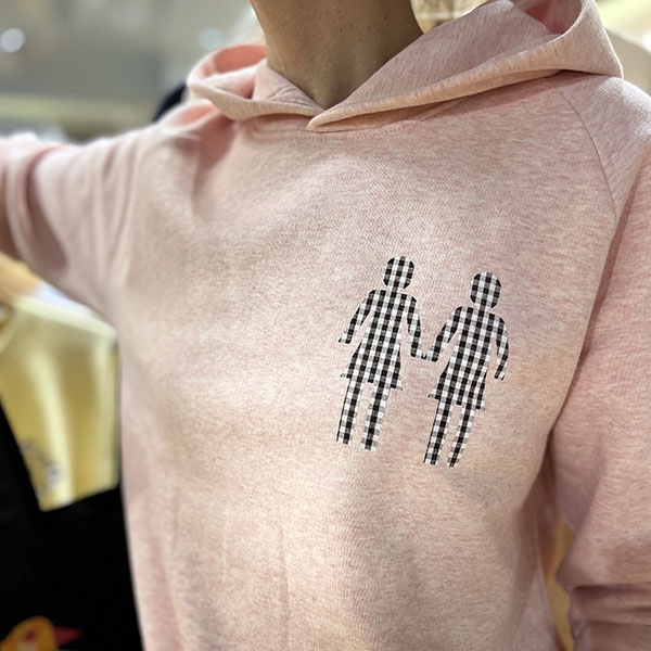 Hoodie Les Vichyssoises, motif au choix parmi nos artworks d'artistes : Twins, Surf, Clématite, Diva & Snoopy… contactez-nous !